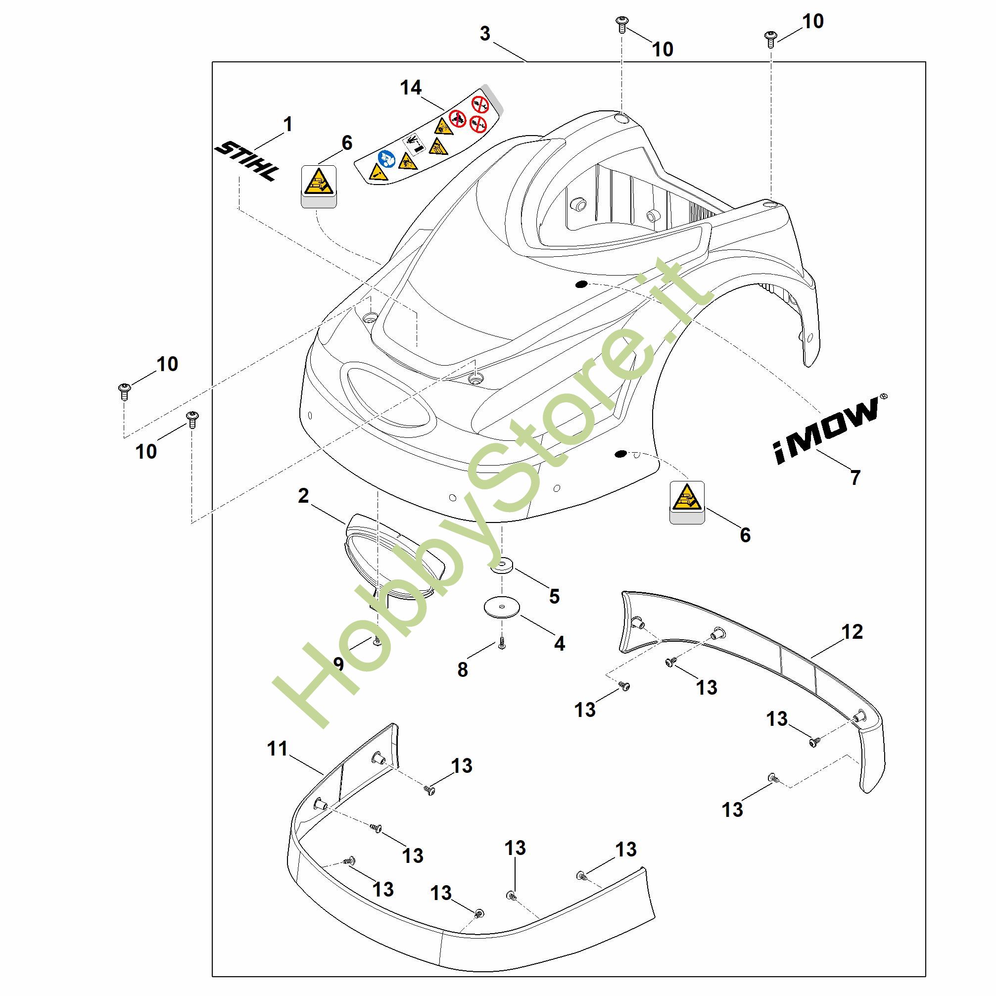 Ricambio Copertura Robot tosaerba (RMI) RMI 422.1 STIHL Contiene anche i ricambi nr. 1,2,4 a 9,11 a 14