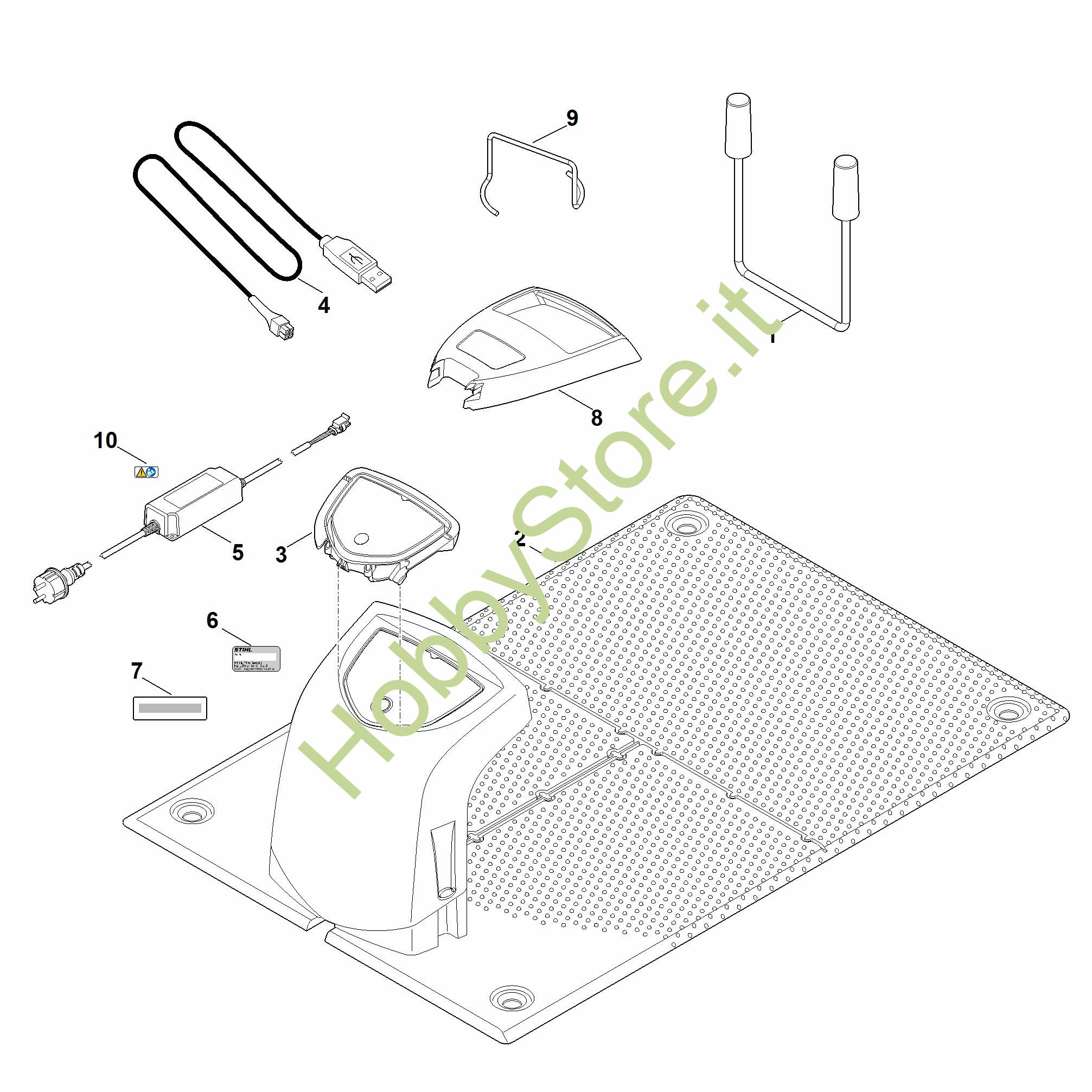 Ricambio Docking station di servizio ADO 100.1 SERVICE Robot tosaerba (RMI) RMI 422.1 Stihl Contiene anche i ricambi nr. F:2 + I:1 e da 3 a 9