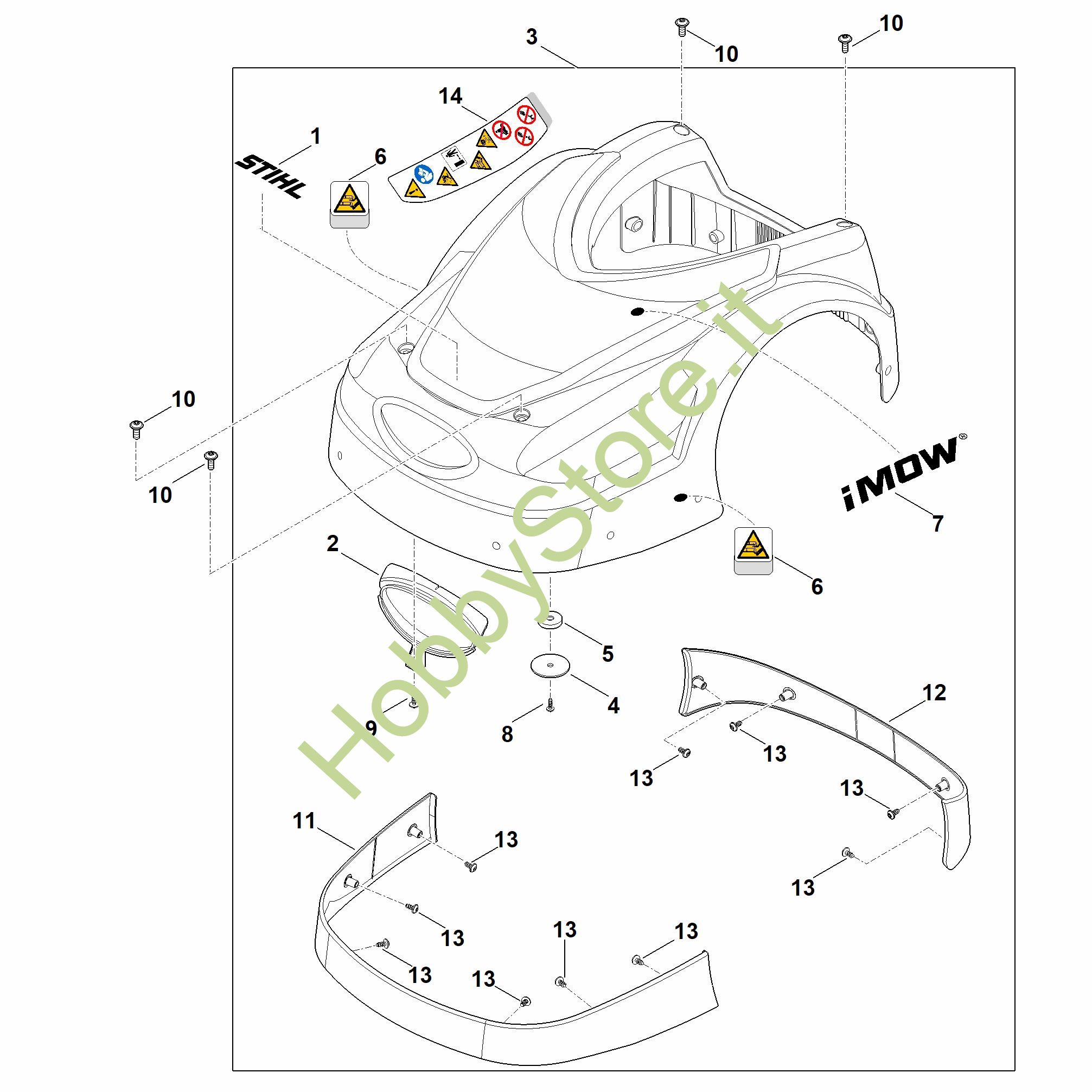 Ricambio Copertura Robot tosaerba (RMI) RMI 422.1 P STIHL Contiene anche i ricambi nr. 1,2,4 a 9,11 a 14