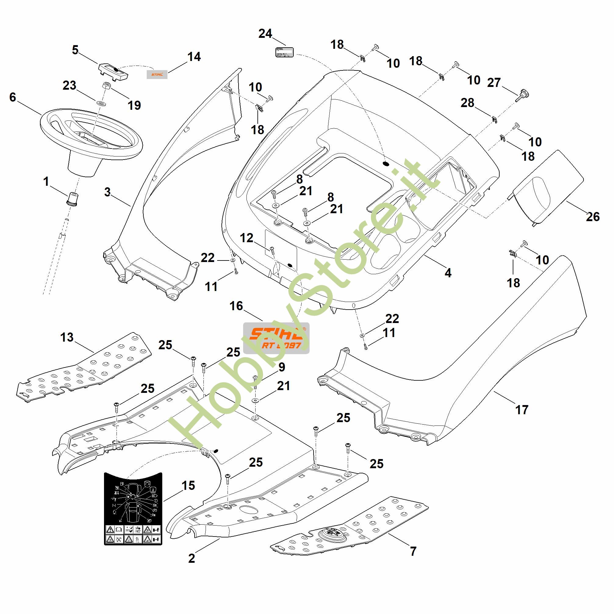 Ricambio Copertura compl. RT RT 5097.0 STIHL Contiene anche i ricambi da n. 26 a 28