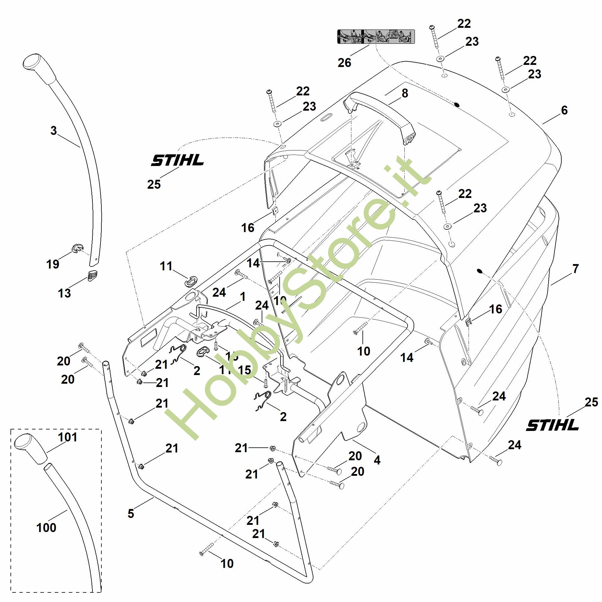 Ricambio Coperchio RT RT 5097.0 STIHL Contiene anche i ricambi n. 25 e 26
