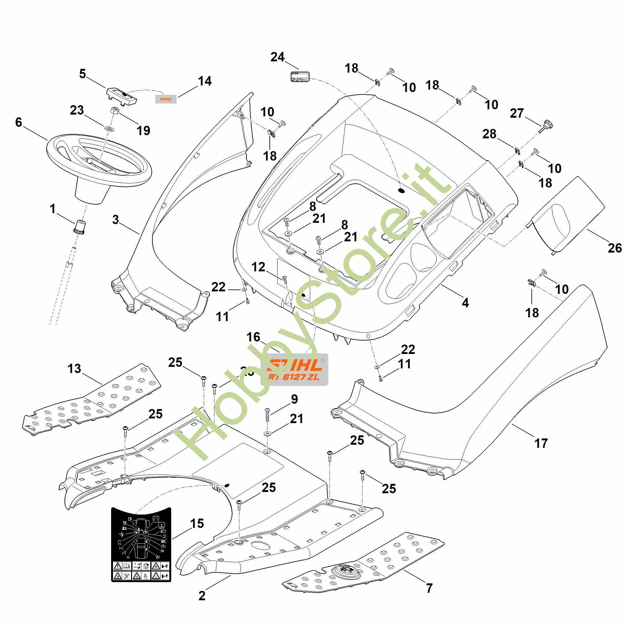 Ricambio Copertura compl. RT RT 6127.0 ZL STIHL Contiene anche i ricambi da n. 26 a 28