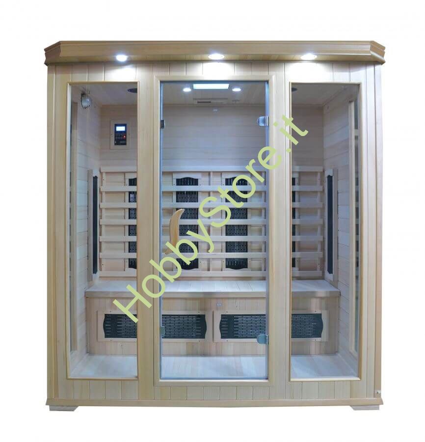 Sauna dal facile montaggio grazie ai pratici ganci che uniscono i diversi pannelli tra di loro e al manuale di istruzioni allegato. Le saune ad infrarossi HobbyStore, essendo saune appunto ad infrarossi, necessitano solamente di una normale presa elettrica a 220V. Ideali per destinare un piccolo angolo della tua casa ad una sauna attrezzata, dotata di ogni comfort, Radio, Lettore cd, Ionizzatore per profumoterapia, cromoterapia a svariati colori. Le nostre saune a raggi infrarossi sono costruite in legno di qualità per assicurare durata ed affidabilità nel tempo.Sauna di qualità assicurata e garantita tramite servizio di assistenza tecnica e ricambi post-vendita direttamente dal produttore SAUNA IN LEGNO AD INFRAROSSI HOBBYSTORE...GODITI IL RELAX DI QUESTA SAUNA !!!CARATTERISTICHE TECNICHE: