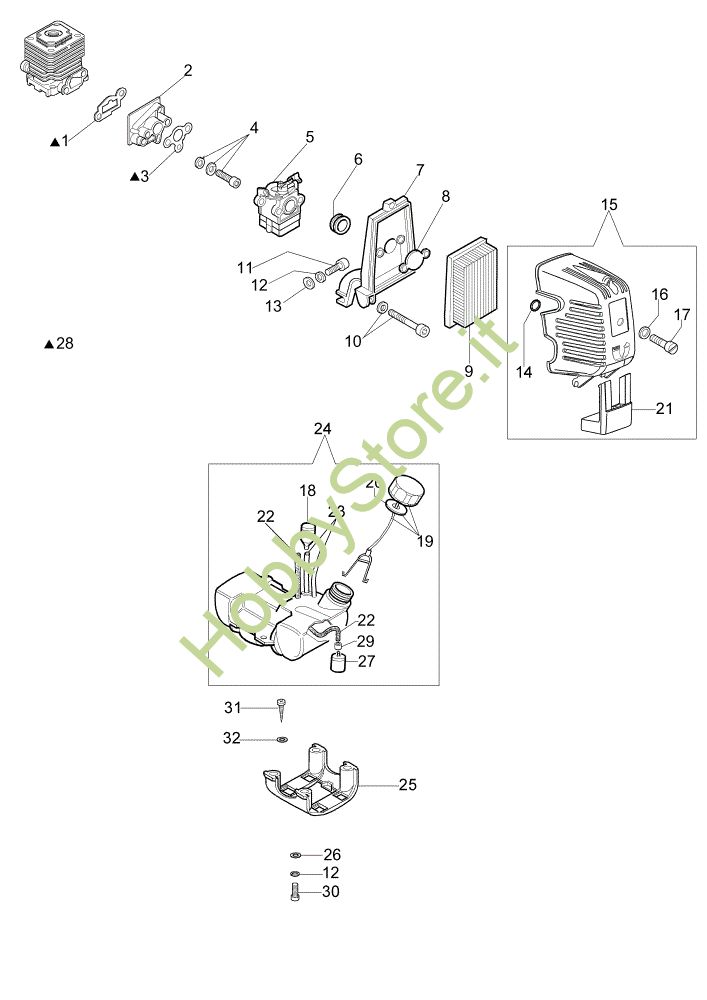 Ricambio Carburatore WYK-143B Serbatoio e filtro aria SO 5500 Ergo Cat.2013 Scuotitore della marca Efco Richiede pezzi:1
