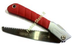 Seghetto per potatura con lama da 200 mm richiudibile. Manico in alluminio, impugnatura in gomma, 2 posizioni di taglio lama a dentatura speciale decrescente con tempera ad impulsi.