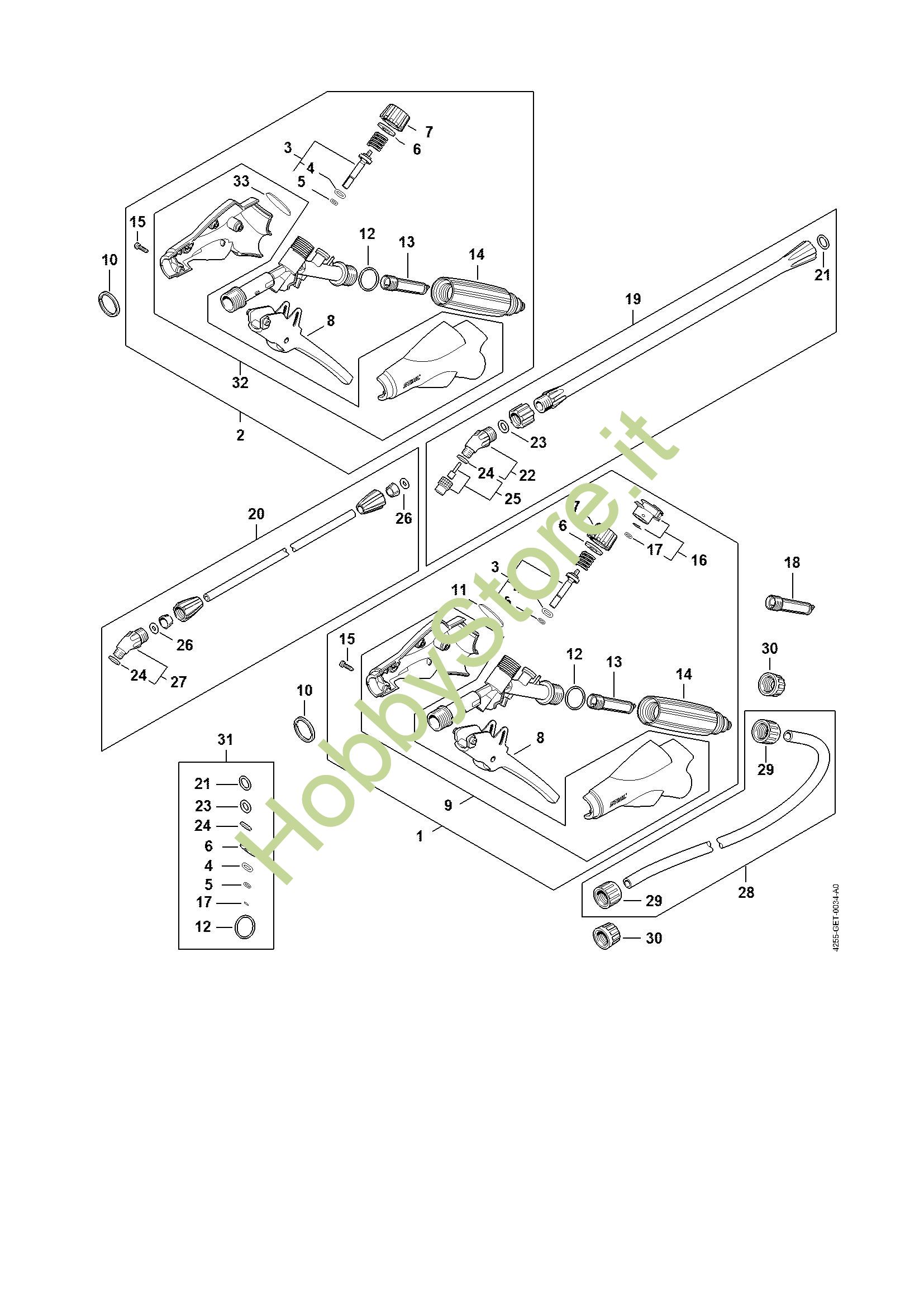 ATTENZIONE: Se nella lista sotto non compaiono i relativi ricambi riportati nell'esploso