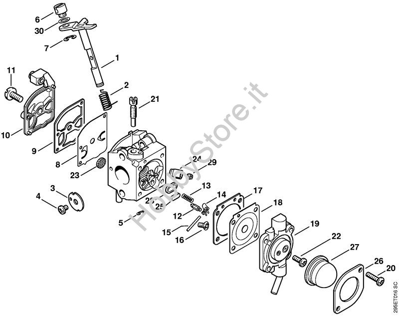 Ricambio Serie particolari carburatore Trituratori ad aspirazione (SH) SH 55 STIHL Contiene anche i ricambi nr. 8, 9, 17, 18