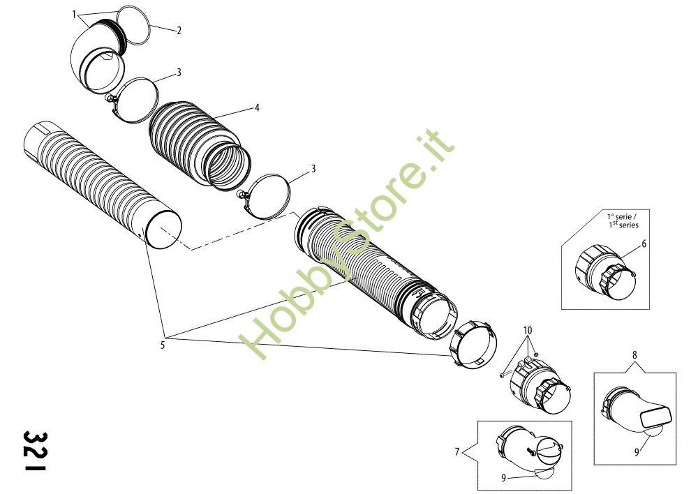 Ricambio Tubo flessibile Tubo prolunga D.100 BV 900 Soffiatore della marca Oleo-Mac Richiede pezzi:1
