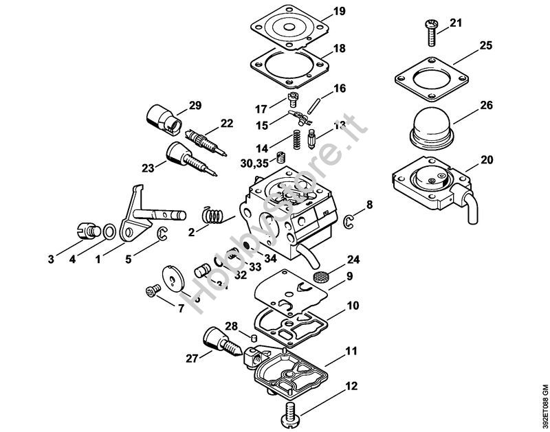 Ricambio Serie particolari carburatore Apparecchi speciali (PC, SP, MC) SP 81 STIHL Contiene anche i ricambi nr. 9, 10, 18 a 20