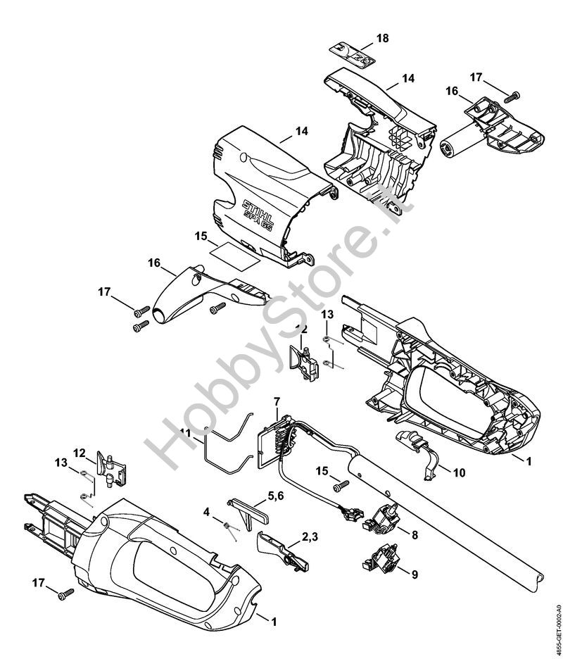 Ricambio Corpo impugnatura Apparecchiature speciali a batteria (SPA) SPA 65 STIHL Contiene anche i ricambi nr. 2, 4, 5