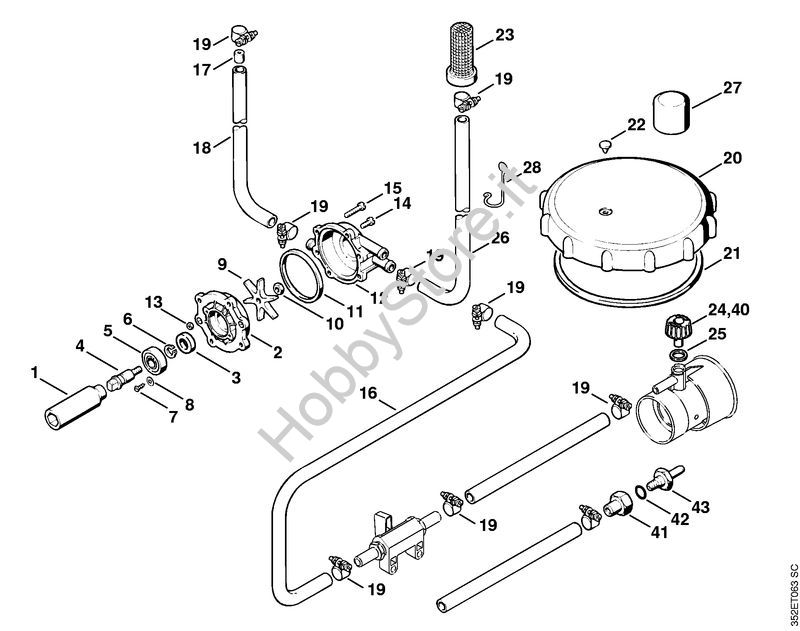 Ricambio Gruppo pompa dosatrice (ULV) Atomizzatori (SR) SR 320 STIHL Contiene anche i ricambi da n. 1 a 28