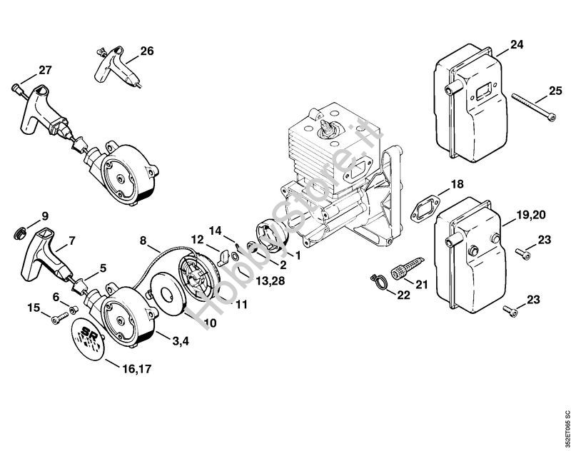 Ricambio Coperchio avviamento con dispositivo di avviamento Atomizzatori (SR) SR 400 STIHL Contiene anche i ricambi da n. 4 a 14