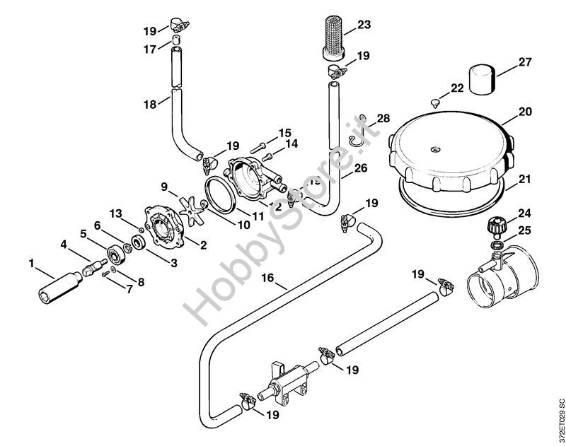 Ricambio Gruppo pompa dosatrice (ULV) Atomizzatori (SR) SR 420 STIHL Contiene anche i ricambi da n. 1 a 28