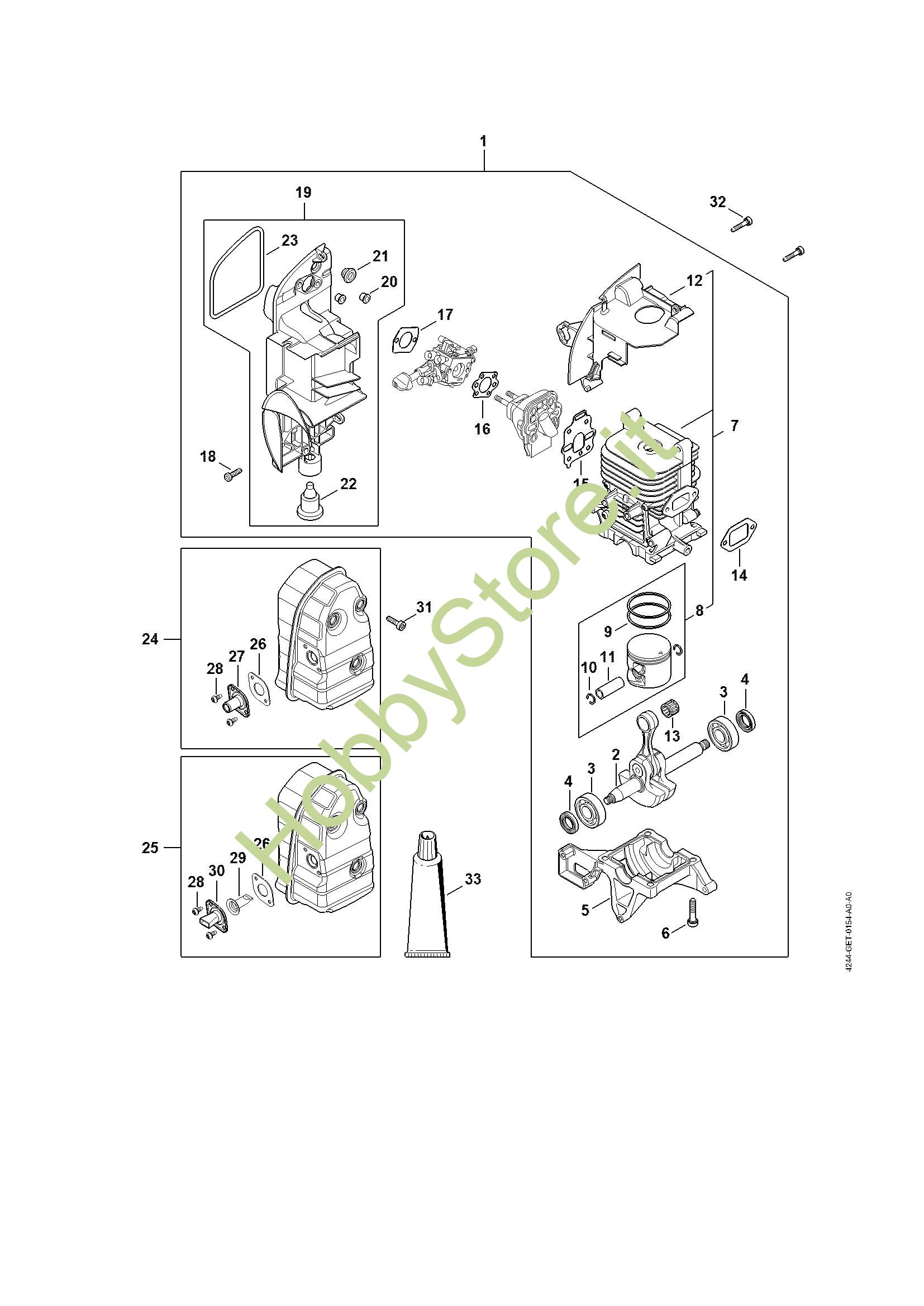 Ricambio Gruppo propulsore SR 430, 450 Atomizzatori (SR) SR 430 STIHL Contiene anche i ricambi da n. 2 a 23