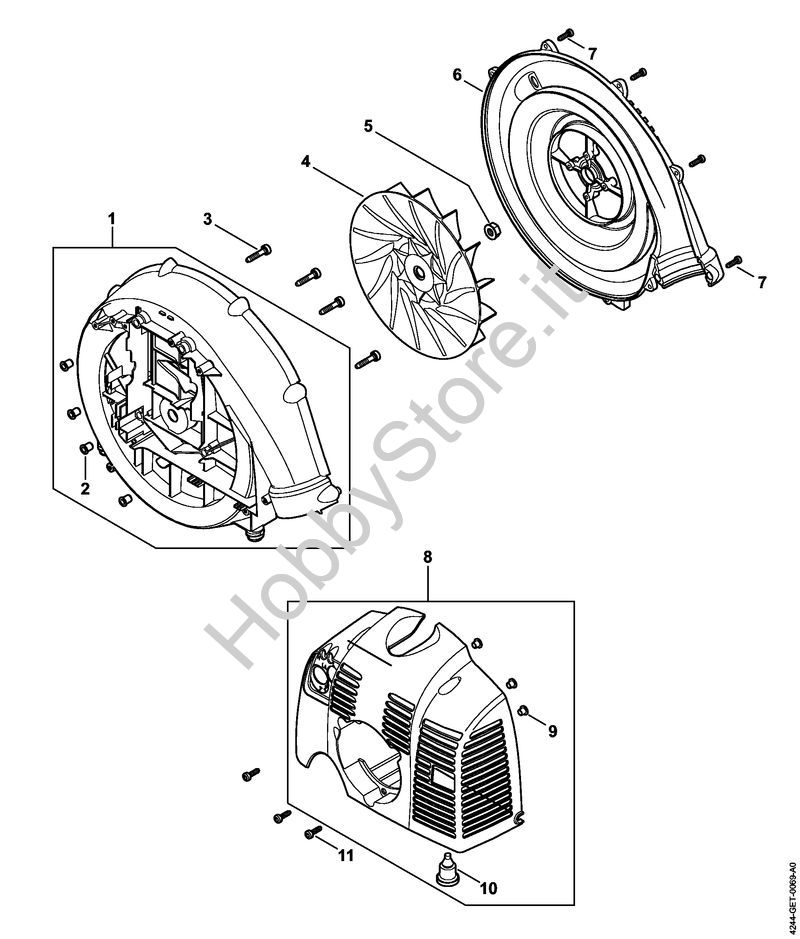 Ricambio Cappottatura Atomizzatori (SR) SR 430 STIHL Contiene anche i ricambi n. 9 e 10