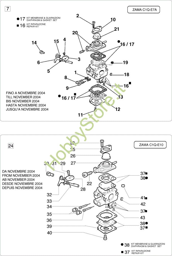ATTENZIONE: Se nella lista sotto non compaiono i relativi ricambi riportati nell'esploso