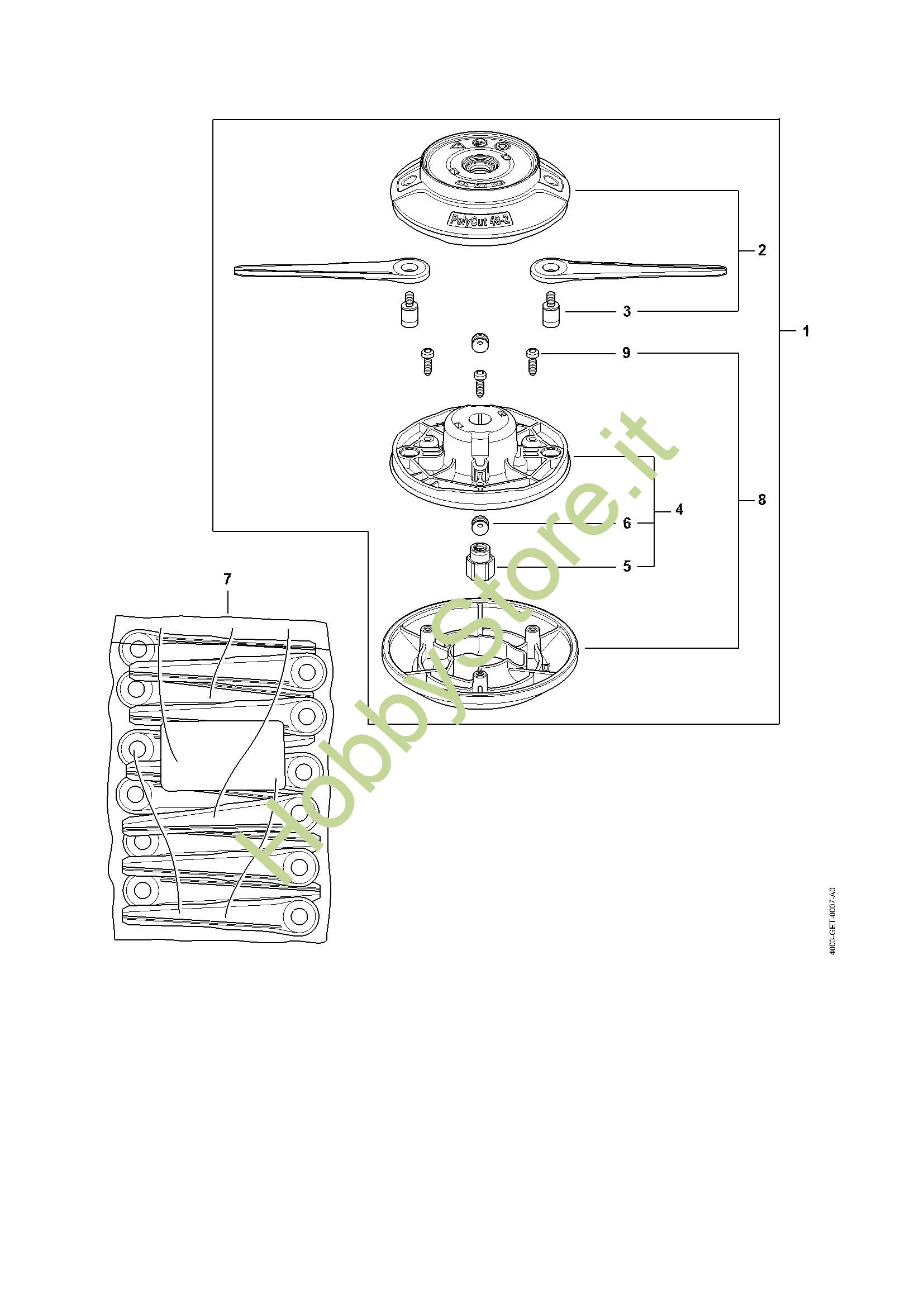 In caso di ordine di ricambi per il tuo prodotto FS Attrezzi di taglio Testa falciante PolyCut 48-2 della Stihl, per permettere al nostro staff di spedirti i ricambi corretti, inserire, nella pagina finale del carrello nel campo Note varie, anno della macchina e, se disponibile, il suo numero di matricola.