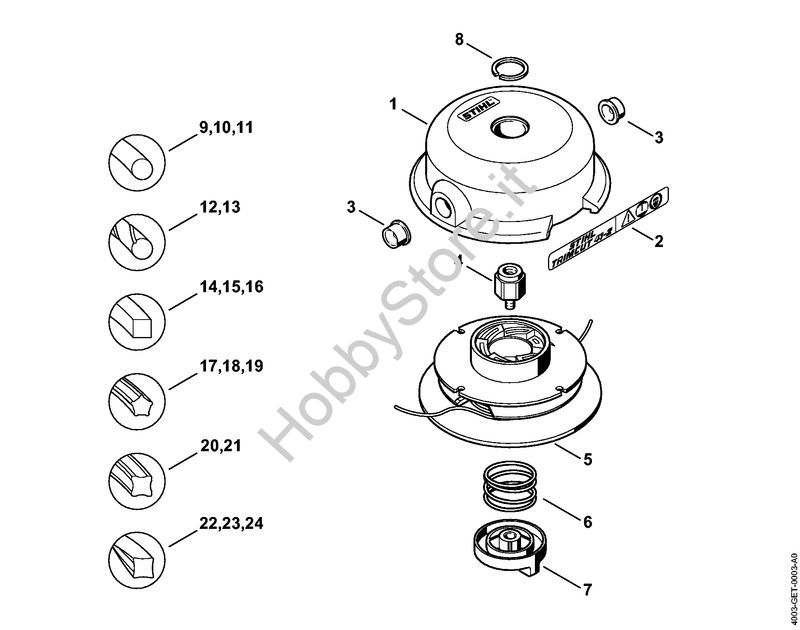In caso di ordine di ricambi per il tuo prodotto FS Attrezzi di taglio Testa falciante TrimCut 41-2 della Stihl, per permettere al nostro staff di spedirti i ricambi corretti, inserire, nella pagina finale del carrello nel campo Note varie, anno della macchina e, se disponibile, il suo numero di matricola.