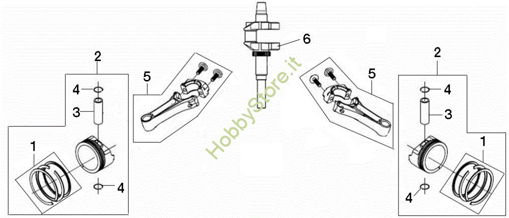 Ricambio Assieme biella motore Albero e pistone EF 124/24 KH (K2400AVD V-Twin) Cat. 2016 Trattorino della marca Efco Richiede pezzi:2