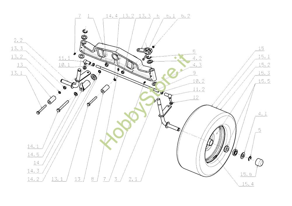 Ricambio Ruota Assale anteriore OM 105J/15,5H Cat.2008 Trattorino della marca Oleo-Mac Richiede pezzi:2