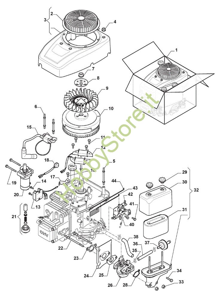 Avviamento, carburatore e filtro aria GLX 14-84G Trattorino