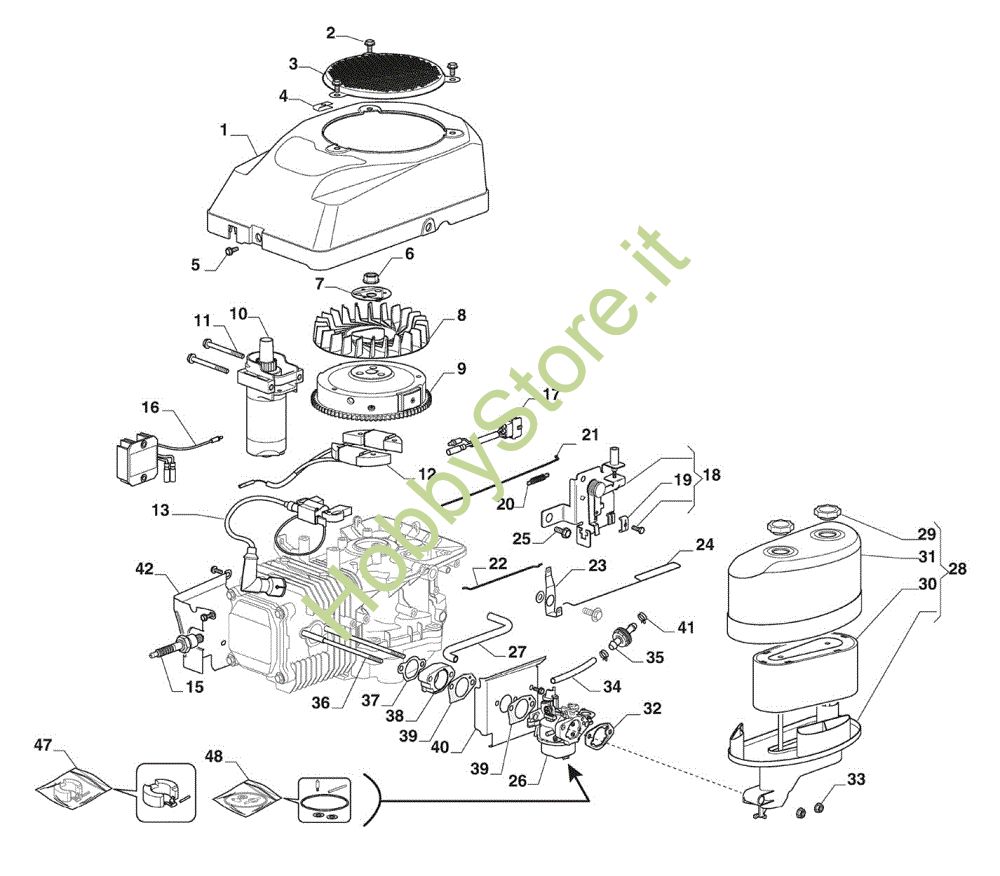 Avviamento, carburatore e filtro aria GLX 14-98HS Trattorino