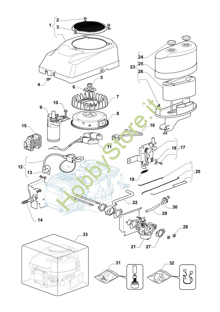 Avviamento, carburatore e filtro aria OM 84/14,5 K H Cat. 2014 Trattorino