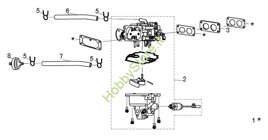 Ricambio Carburatore Per modelli fino a 04/17 Carburatore OM 106/24 KH (K2400AVD V-Twin) 4X4 Cat. 2023 Trattorino della marca Oleo-Mac Richiede pezzi:1
