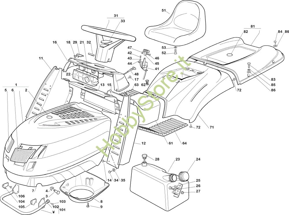 Ricambio Serbatoio Carrozzeria EF 102C/15,5H Cat.2005 Trattorino della marca Efco Richiede pezzi:1