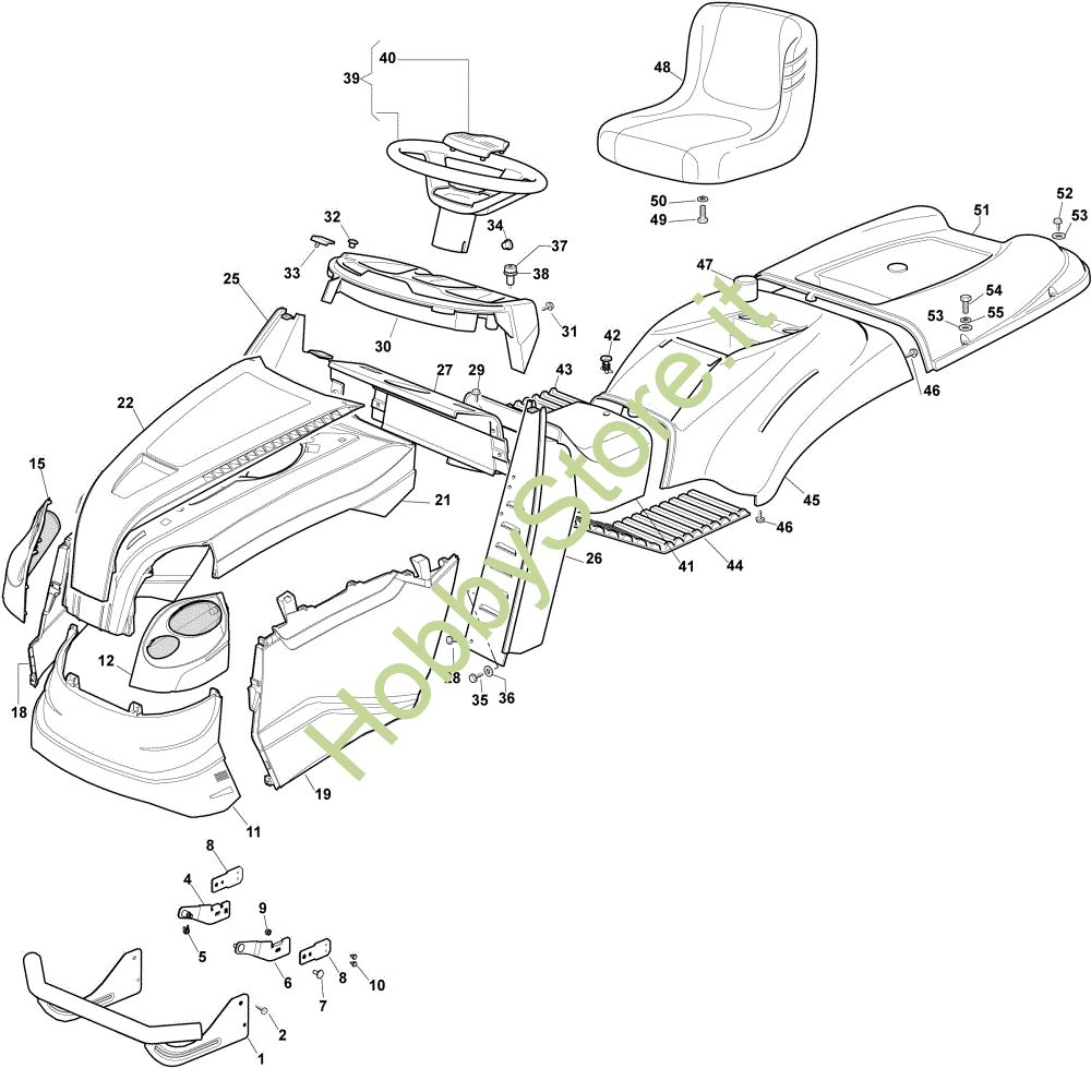 Ricambio Copertura Carrozzeria EF 123/22 V Cat. 2022 Trattorino della marca Efco Richiede pezzi:1