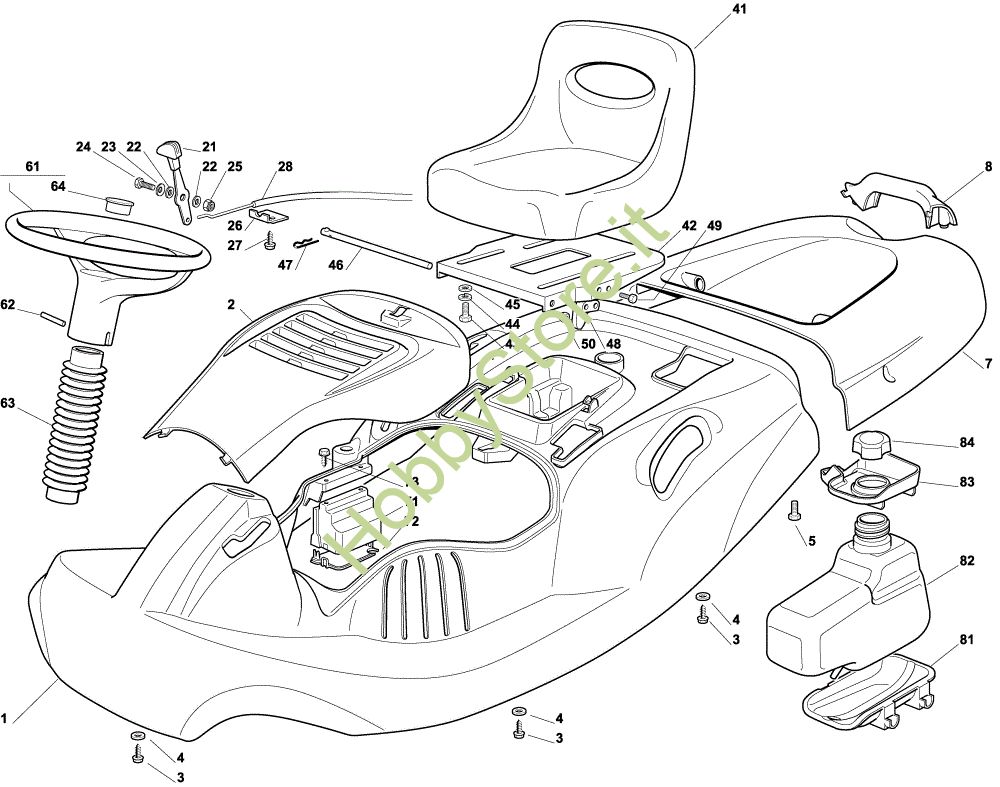 Ricambio Serbatoio Carrozzeria EF 63C/6,5M Cat.2004 Trattorino della marca Efco Richiede pezzi:1