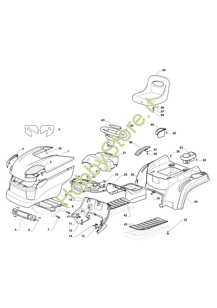 Ricambio Copertura Carrozzeria EF 84/14,5 K H Cat. 2017 Trattorino della marca Efco Richiede pezzi:1