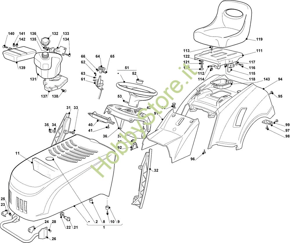 Ricambio Serbatoio Carrozzeria EF 91C/11,5M Cat.2008 Trattorino della marca Efco Richiede pezzi:1