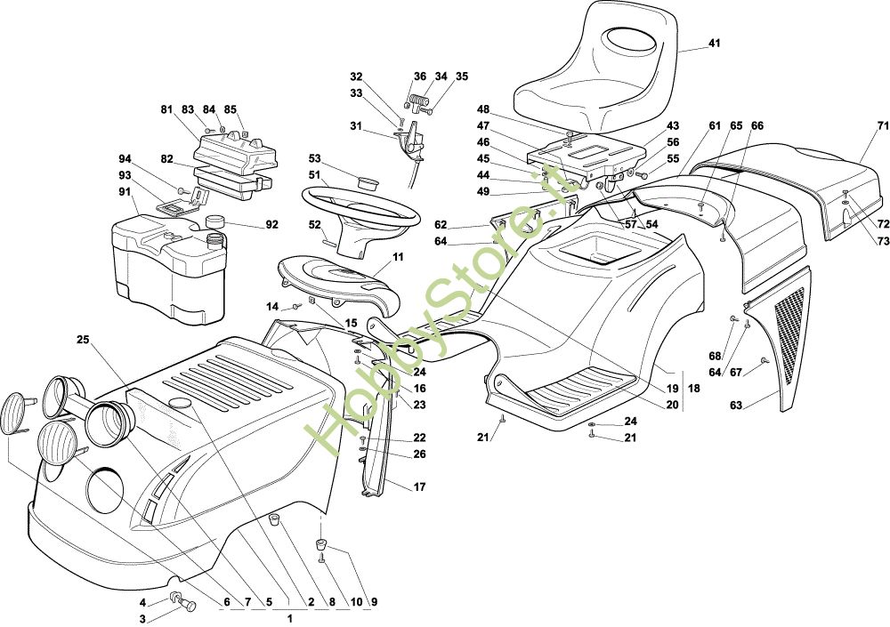 Ricambio Copertura Carrozzeria EF 92C/13,5H Cat.2003 Trattorino della marca Efco Richiede pezzi:1