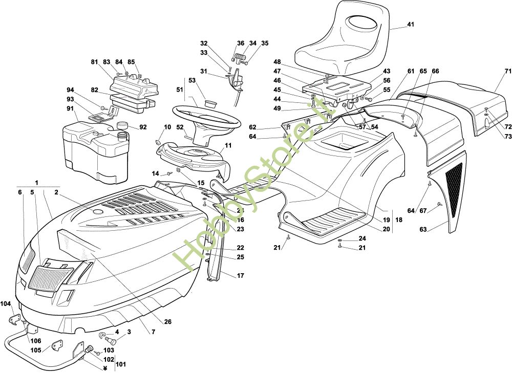 Ricambio Copertura Carrozzeria EF 92C/13,5M Cat.2004 Trattorino della marca Efco Richiede pezzi:1