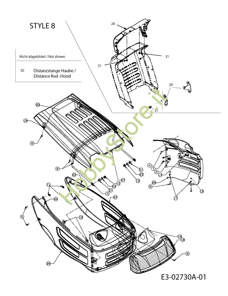Ricambio Fermo Carrozzeria STORM 95/11,5 T Trattorino della marca Efco Richiede pezzi:1