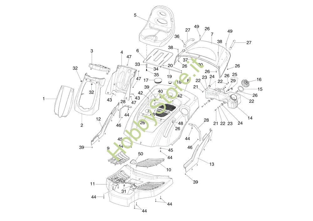 Ricambio Serbatoio Carrozzeria MISTRAL 72/13 H (4in1) e EURO 5 Trattorino della marca Oleo-Mac Richiede pezzi:1