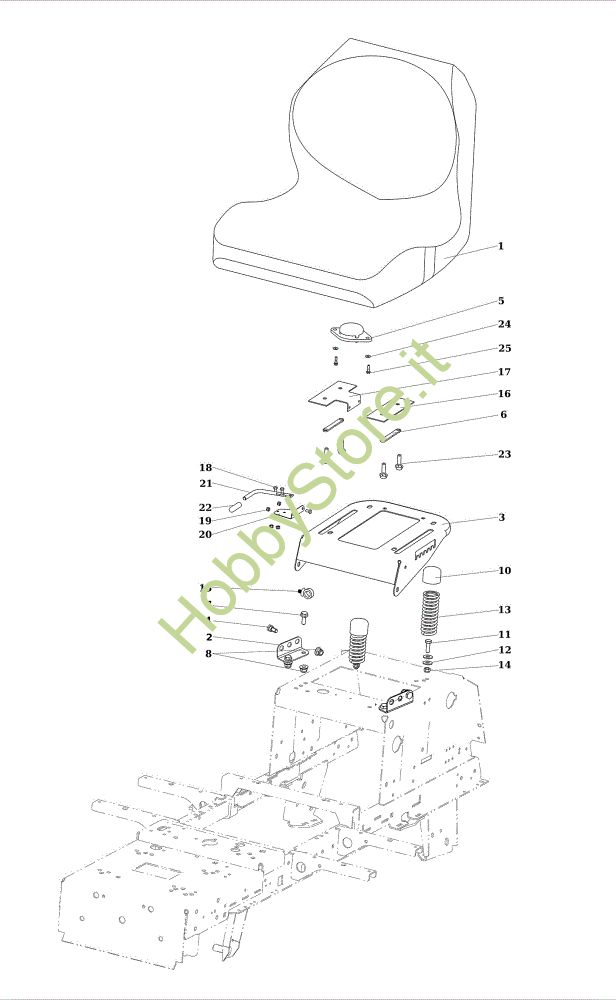 Ricambio Sedile Cofano (1/2) OM 106/20 KWH Cat. 2023 (Victus) Trattorino della marca Oleo-Mac Richiede pezzi:1