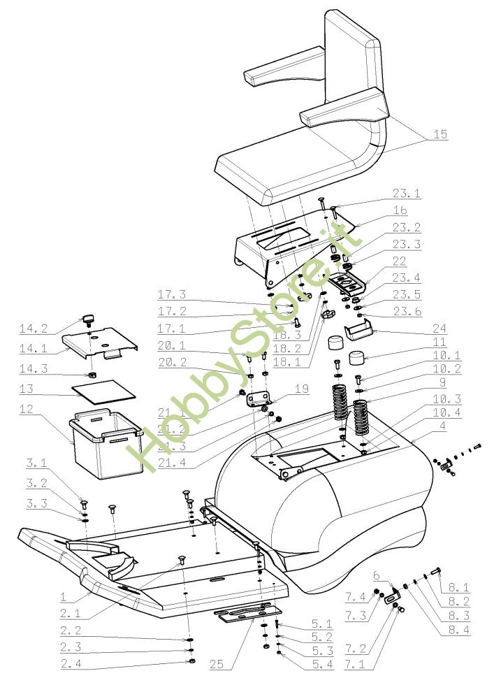 Ricambio Sedile completo Cofano (1/3) OM 124J/22 H Cat.2009 Trattorino della marca Oleo-Mac Richiede pezzi:1