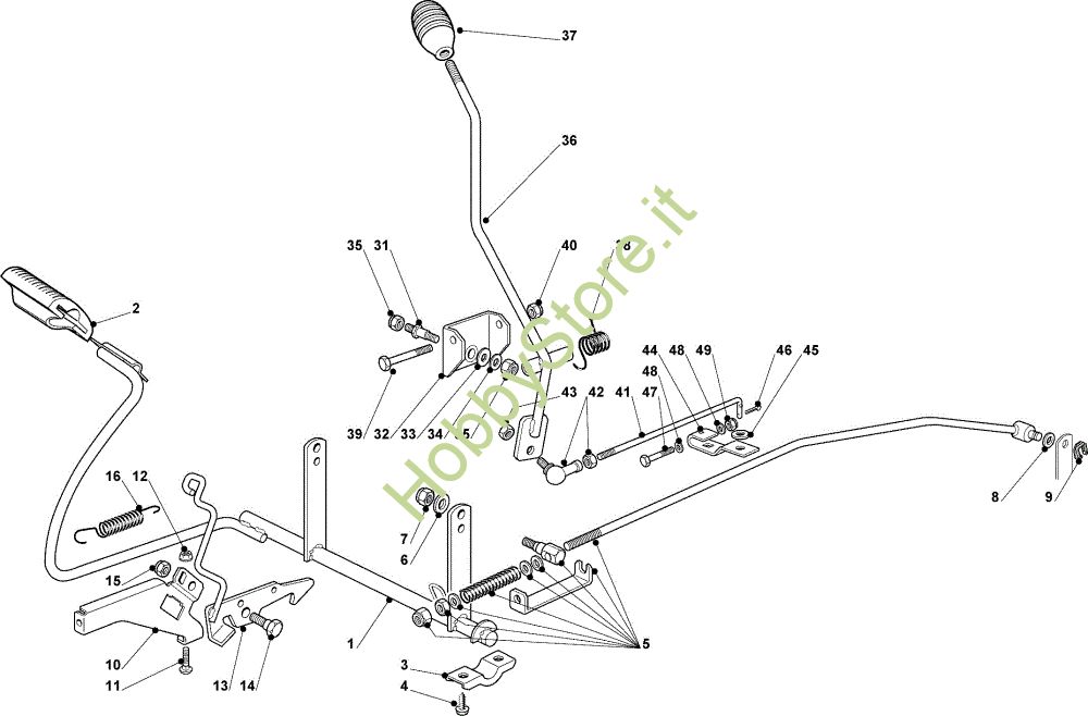Ricambio Pedale Comando freno e comando cambio OM 93C/13,5M Cat.2010 Trattorino della marca Oleo-Mac Richiede pezzi:1