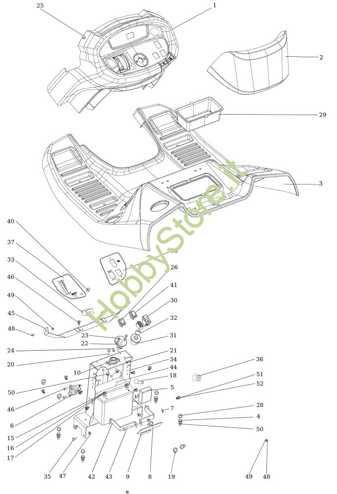 Ricambio Copribatteria Cruscotto EF 124/22 HP Cat. 2023 Trattorino della marca Efco Richiede pezzi:1