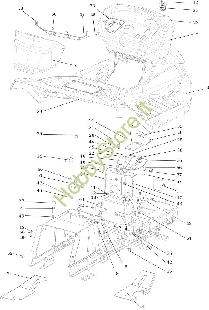 Ricambio Coperchio Cruscotto OM 92/16H Cat.2022 Trattorino OM 92/16H della marca Oleo-Mac Richiede pezzi:1