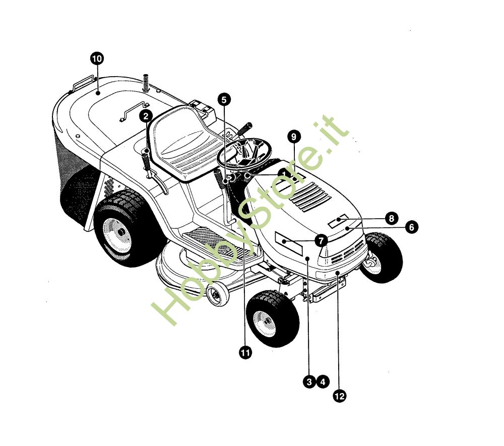Trattorini MARATHON 15.5 - (1°Sr.) Trattorino - 1ª serie (fino a Settembre 98) Etichette (1/2) della marca Oleo-Mac