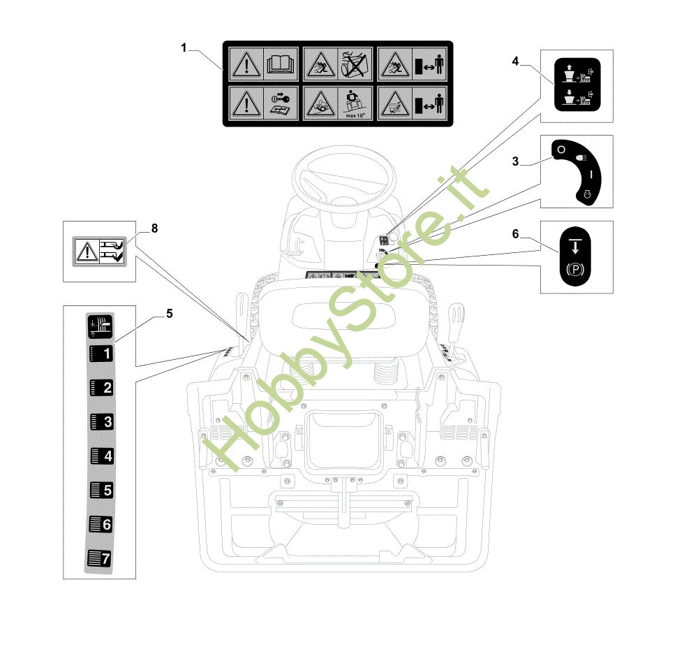 Ricambio Etichetta Etichette (1/2) OM 84/14,5 K H Cat. 2014 Trattorino della marca Oleo-Mac Richiede pezzi:1