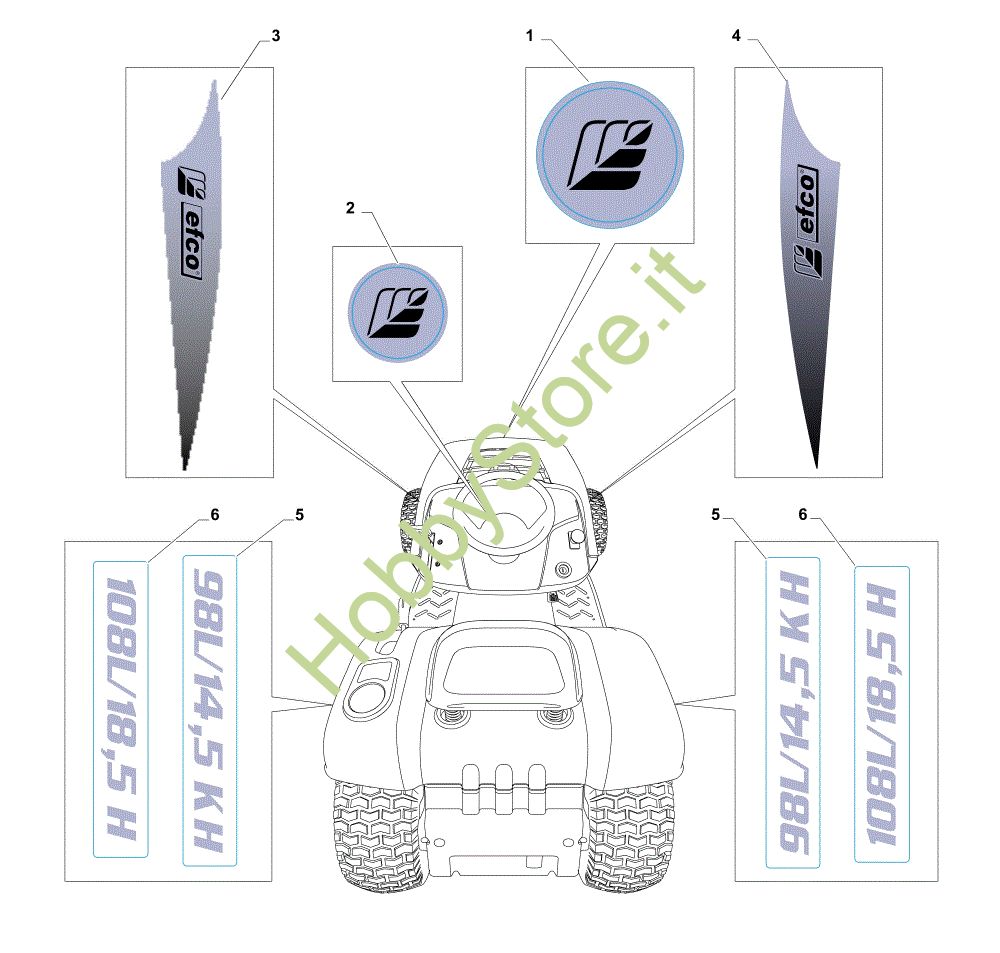 In caso di ordine di ricambi per il tuo prodotto EF 108L/18,5 H Cat. 2014 Trattorino della Efco, per permettere al nostro staff di spedirti i ricambi corretti, inserire, nella pagina finale del carrello nel campo Note varie, anno della macchina e, se disponibile, il suo numero di matricola.