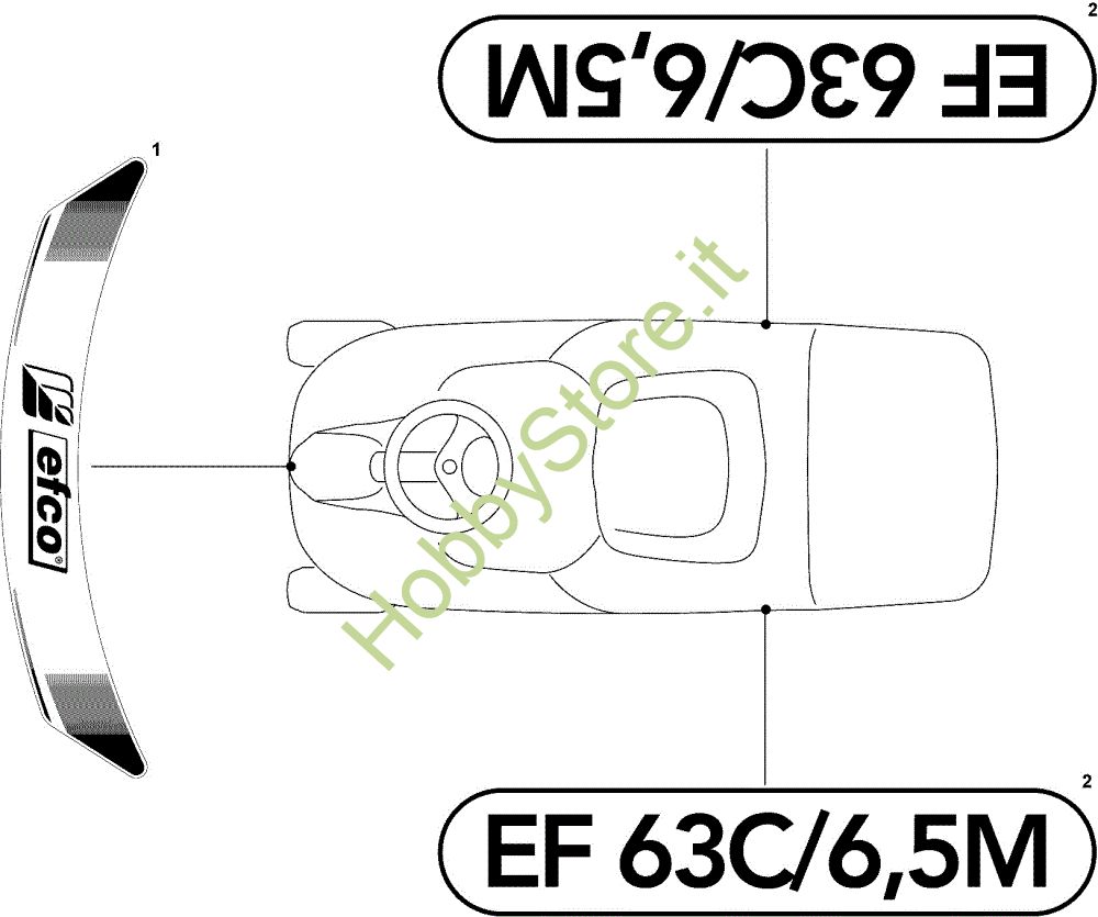 Ricambio Etichetta Etichette (2/2) EF 63C/6,5M Cat.2008 Trattorino della marca Efco Richiede pezzi:1