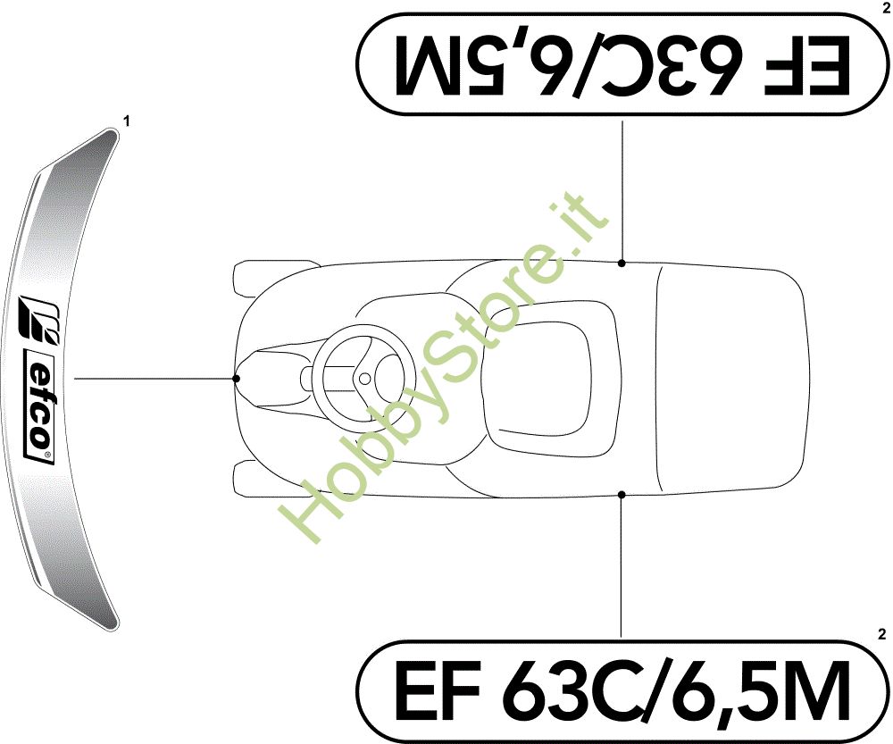 Ricambio Etichetta Etichette (2/2) EF 63C/6,5V Cat.2011 Trattorino della marca Efco Richiede pezzi:1