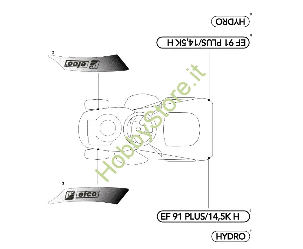 Trattorini EF 91PLUS/14,5K H Cat.2014 Trattorino Etichette (2/2) della marca Efco