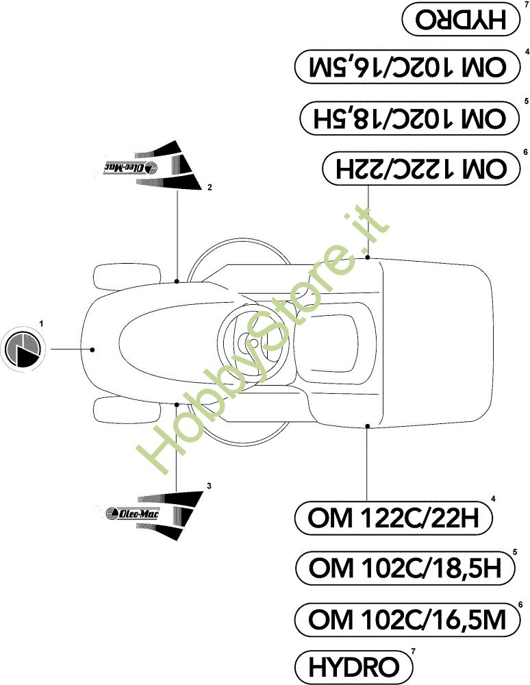Trattorini OM 122C/22H Cat.2009 Trattorino Etichette (2/2) della marca Oleo-Mac