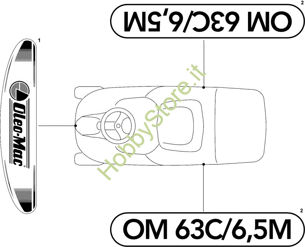 Ricambio Etichetta Etichette (2/2) OM 63C/6,5M Cat.2008 Trattorino della marca Oleo-Mac Richiede pezzi:1